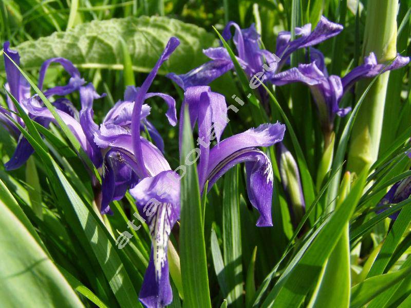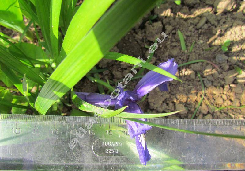 Oddenky s mečovitými listy, dlouhými po odkvětu do 20-25 cm. Celokrajné pevné listy, stočené hranou listů k lodyze, s rovnoběžnou žilnatinou, na vrcholku zašpičatělé. Na květní lodyze, vysoké do 10 cm, vykvétají v toulci postupně jednotlivé květy. Kvetou v dubnu až v květnu. Modré květy široké do 7 cm. Šest okvětních lístků, z toho 3 přímé vnitřní, na okrajích třepenité, 3 vnější nazpět stočené, na vrcholku lžícovitě prohnuté, ve středové části na hlavní žilce bílé, na okvětních lístcích s tmavším modrým žilkováním. Tobolky.