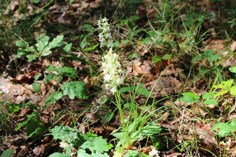 Naše zemní orchidej. Z podzemní hlízy vyrůstají dva (vzácněji 3) celokrajné, eliptické až kopinaté listy. Kvete květen až červenec. Bílé květy v hroznu. Tobolka.