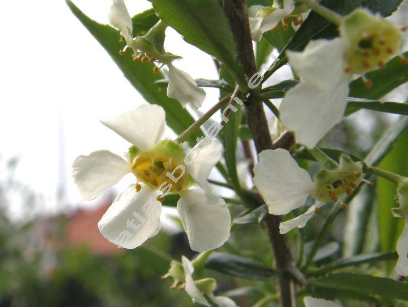 Ostnitý listnatý keř vysoký 1-3 m. Kopinaté řapíkaté listy se zpeřenou žilnatinou, na okrajích jemně nepravidelně pilovité. Kvete duben až květen. Bílé květy s okrouhlými lístky, na bázi nehetnatě staženými. Peckovice.