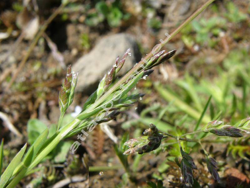 Drobná trsnatá tráva, trávové listy dlouhé do 5-15 cm, široké do 0,5 cm, u horních listů jazýčky dlouhé až 0,3 cm. Kvete duben až září. Květní stébla dlouhá do 0,25 m, klásky ve zploštěné latě, často fialově zbarvené. Plucha na okrajích blanitá, bez osin. Obilka.
