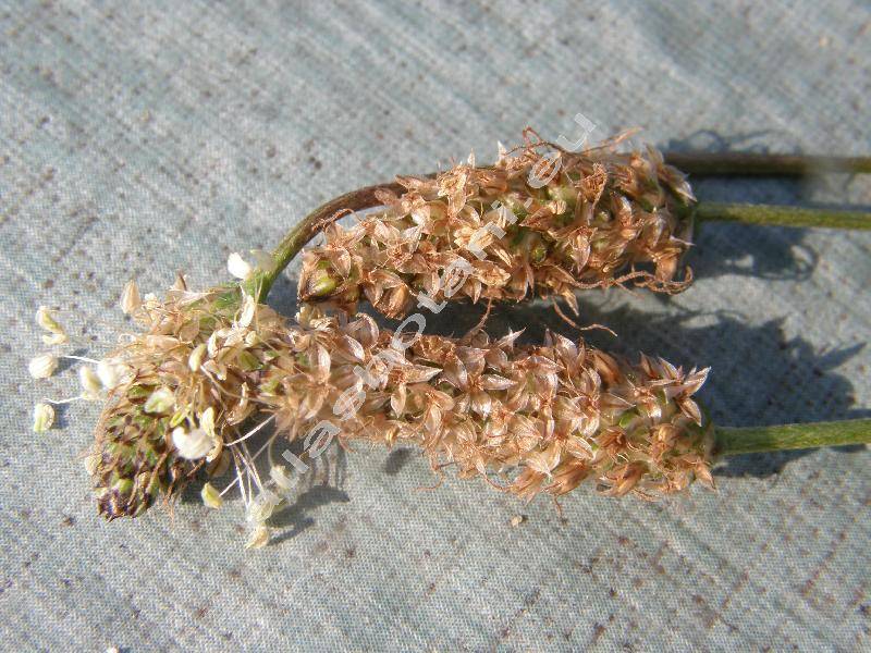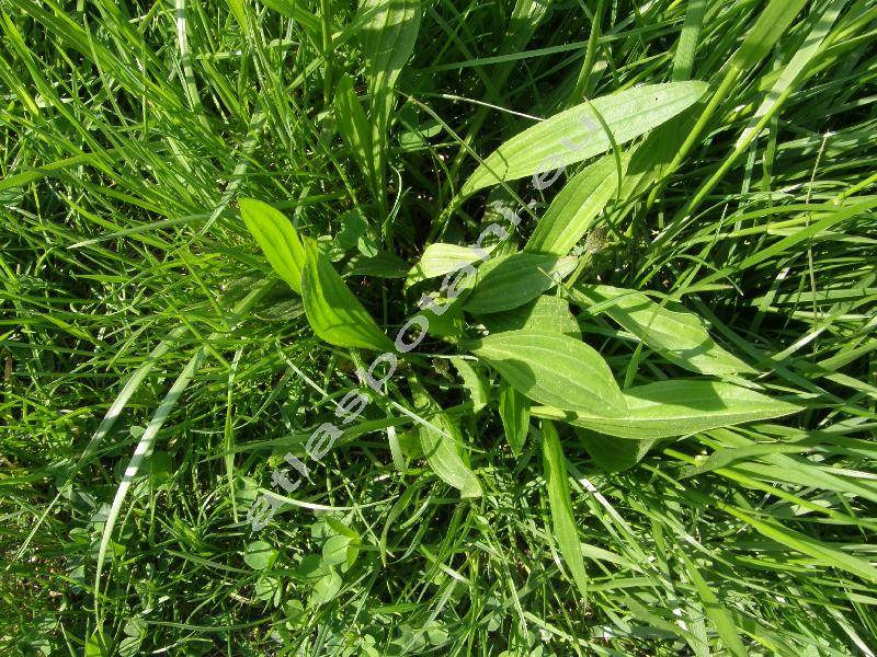 Přízemní růžice kopinatých, řapíkatých listů. Celokrajné listy se souběžnou, vnořenou žilnatinou, se třemi až pěti žilkami, na vrcholku špičaté. Pevný květní stvol, vysoký do 0,3 m, s klasy květů. Kvete v květnu až v září. Bíle světle hnědý květ, široký do 0,3 cm, se čtyřmi lístky, ve středové části s hnědým pruhem, s krátkou trubkou, s vyniklými bílými tyčinkami, s bílými prašníky. Tobolka.