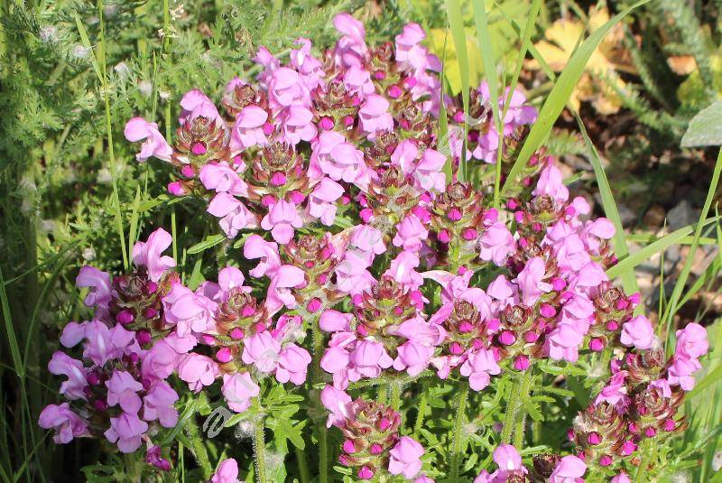 Přímá čtyřhranná lodyha porostlá odstálými bílými chlupy, vysoká 10-20 cm. Spodní řapíkaté listy. Ve středové části stonku řapíkaté kopinaté listy, na okrajích peřenosečně až peřenoklaně dělené. Kvete v červnu až v srpnu. Nafouklý kalich na okrajích červeně zbarvený, se šídlovitými cípy. Fialovočervené květy široké 1,5 cm, dlouhé 2,5 cm. Korunní trubka s vyklenutým horním pyskem. Dolní miskovitě prohnutý pysk s jemně třásnitými okraji. Tvrdka.